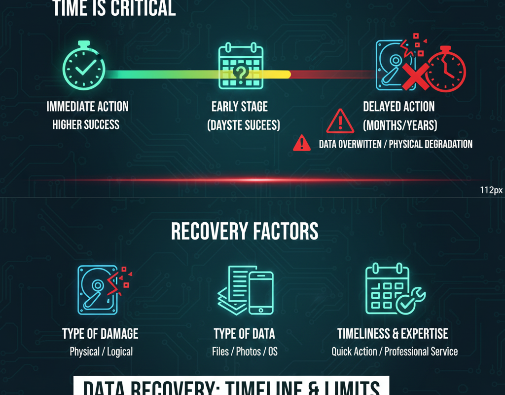 データ復旧にかかる期間は一様ではありませんが、障害の種類や復旧のステップを理解することで、ある程度の予測は可能です。しかし、最も重要なのは、時間が経つほど復旧が難しくなる可能性があるという点です。次のセクションでは、この期間をさらに短縮し、復旧の成功率を高めるための具体的な要因について掘り下げていきます。